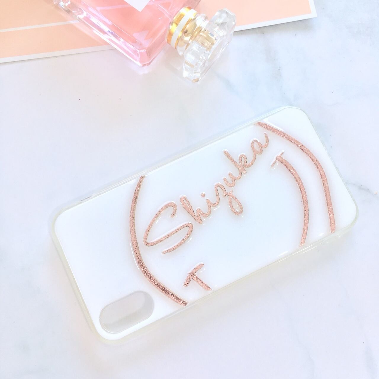 ピンクグリッターケースにお好きな名入れが出来るケースになります。